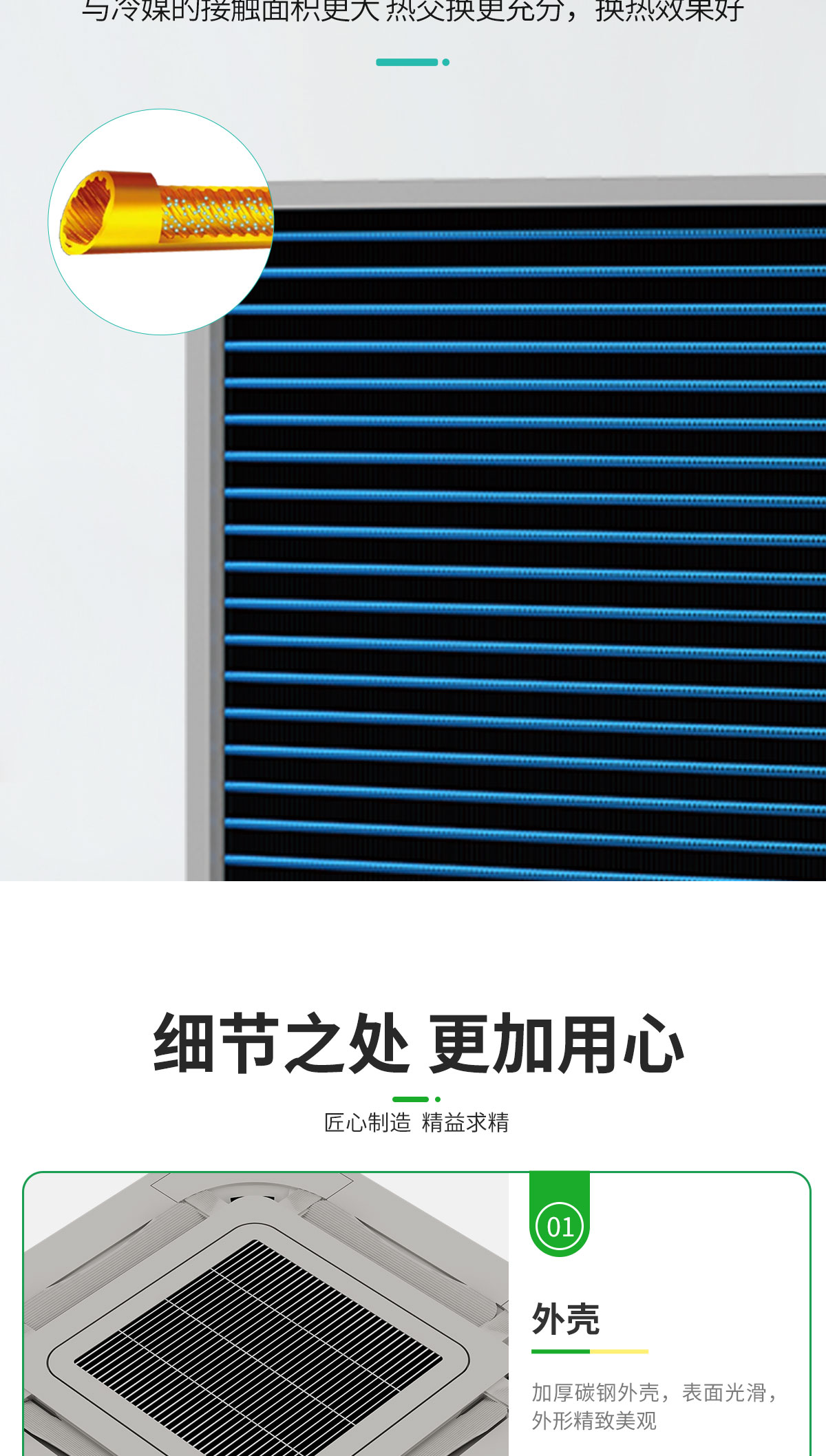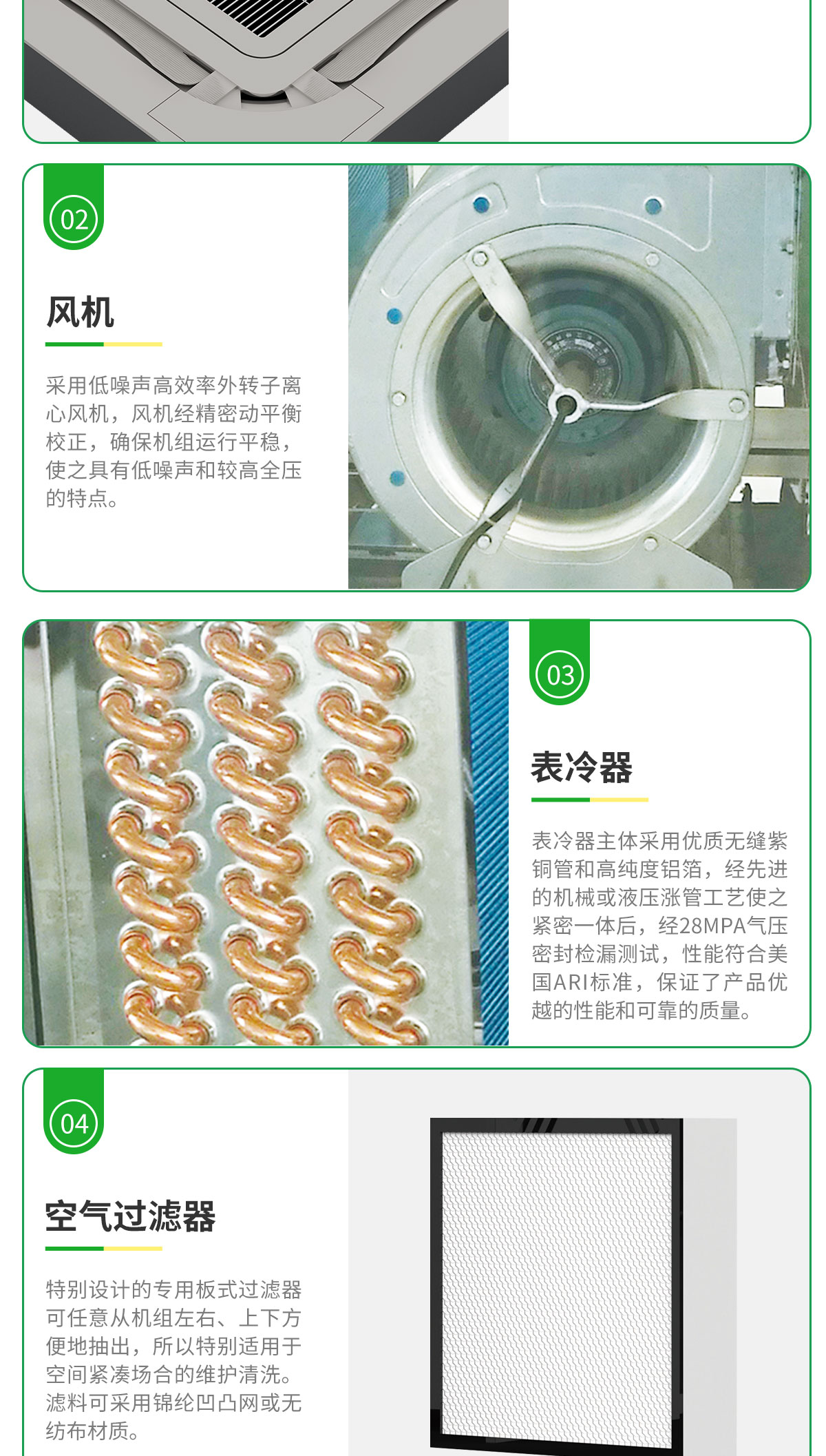 360°廣角送風,氣流均勻送達房間各個角落,出風柔和,舒適度更高 特有高、中、低3檔風速設(shè)計,針對不同安裝高度,可設(shè)定相應(yīng)的送風檔,輕松滿足不同安裝高度的送風需求 卡式風機盤管預留新風引入接口,可用導管將室外新風引入、經(jīng)由全新的長效過濾網(wǎng),令室內(nèi)空氣清新健康更持久