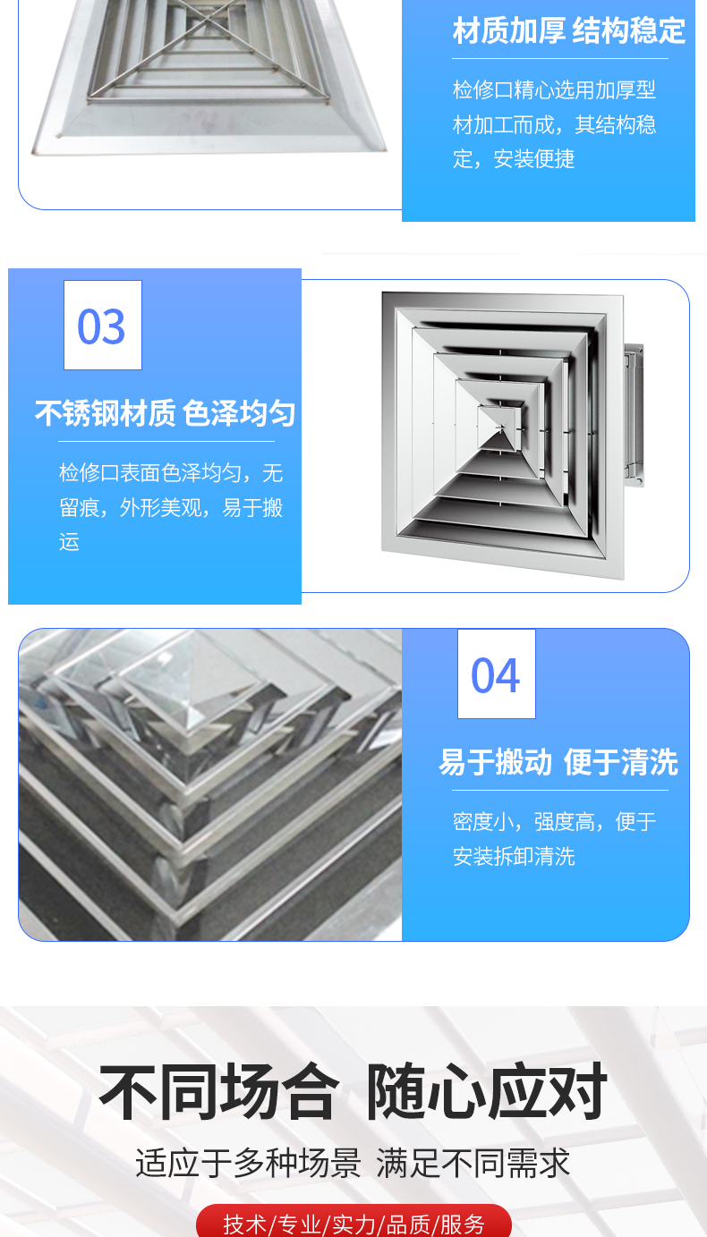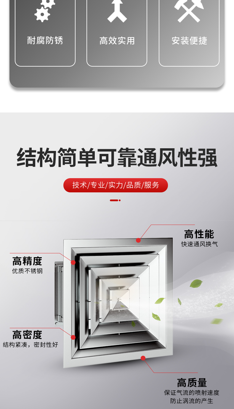 氣流型為貼附(平送型) 適用于吊頂送風(fēng)系統(tǒng) 按性能確定頸部的風(fēng)速,還需考慮安裝的高度及場合 中間葉片蕊可拆卸,便于安裝調(diào)試 尺寸由用戶選定