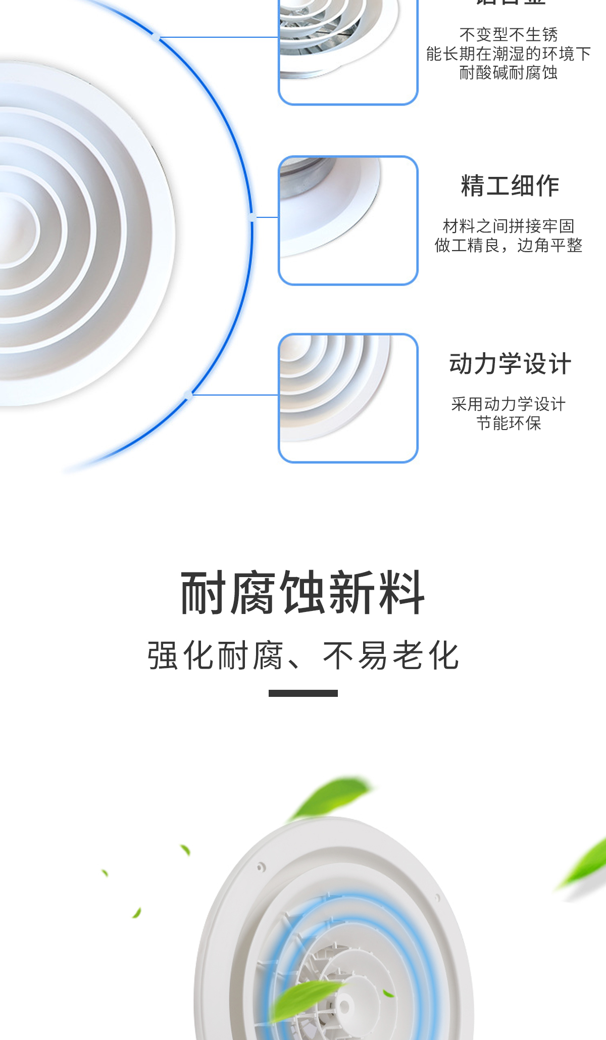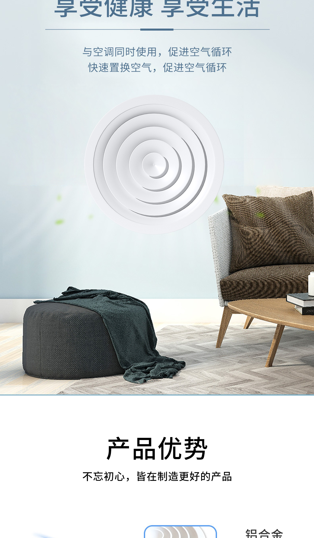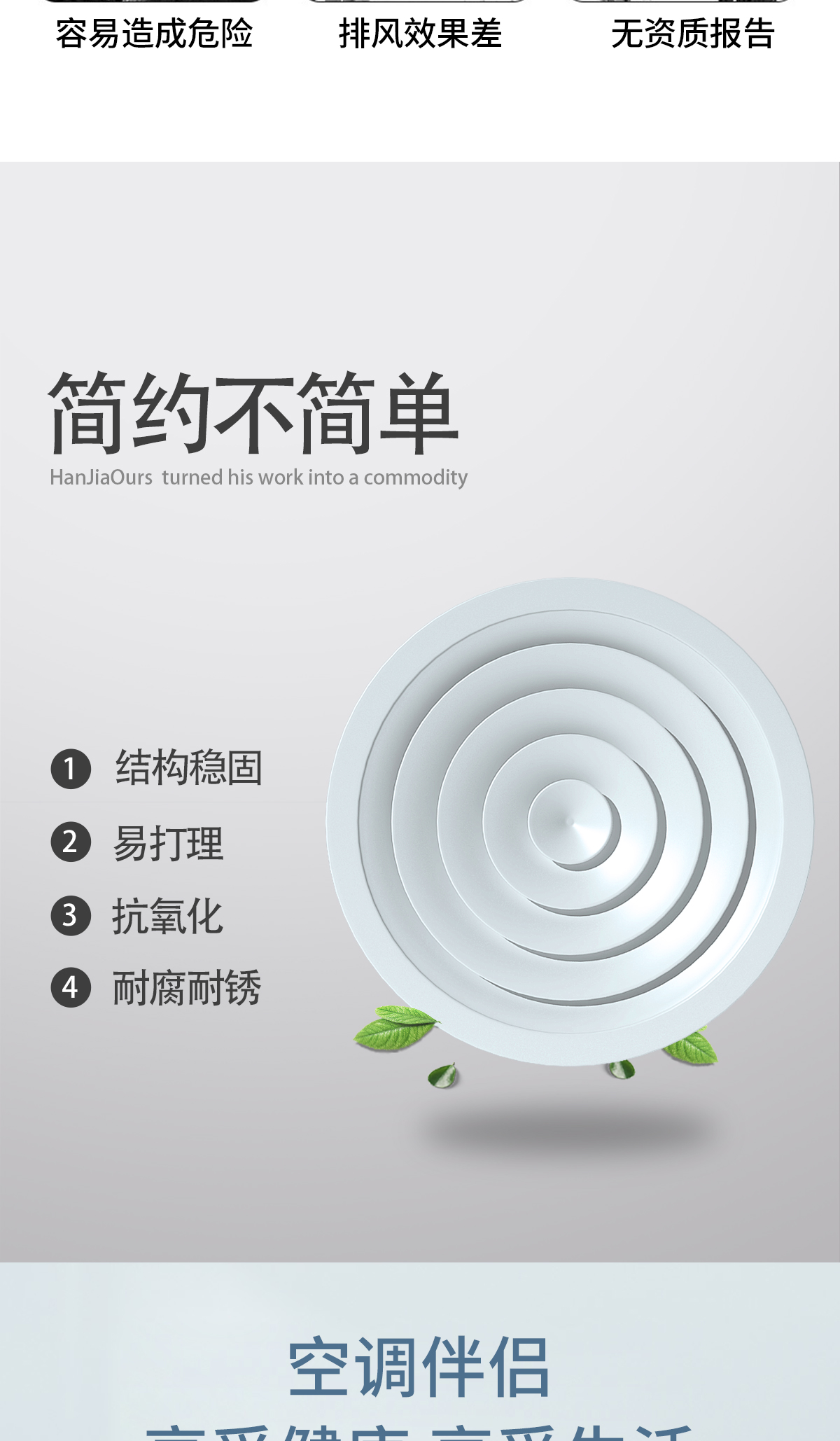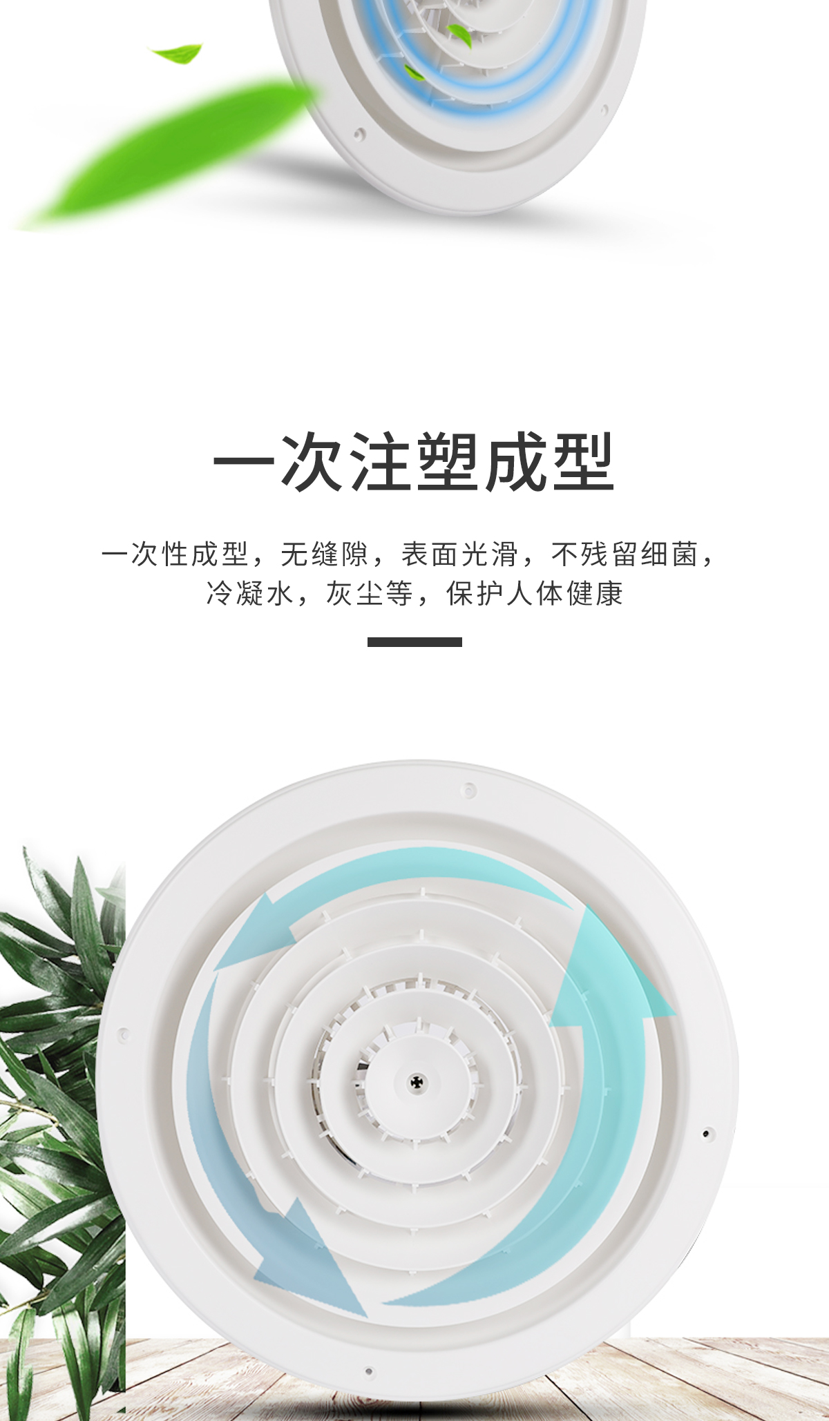 用于冷暖送風(fēng),常安裝在頂棚上 吹出氣流呈貼附(平送)型 可以供給較大的風(fēng)量 在給定風(fēng)量范圍內(nèi)擴(kuò)散半徑可大小變化 可與圓形對(duì)開調(diào)節(jié)閥配套使用
