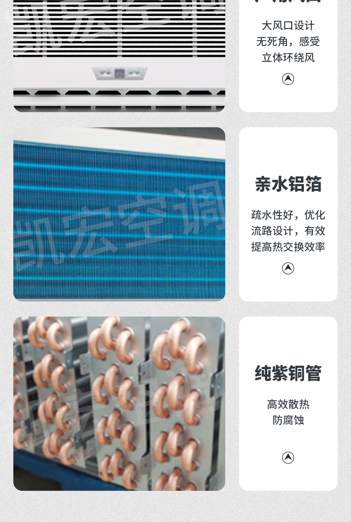 產品采用全面質量管理的生產體制,出廠前經嚴格的測試與檢測,特別是配有冷凝水盤及排水裝置,維修簡便